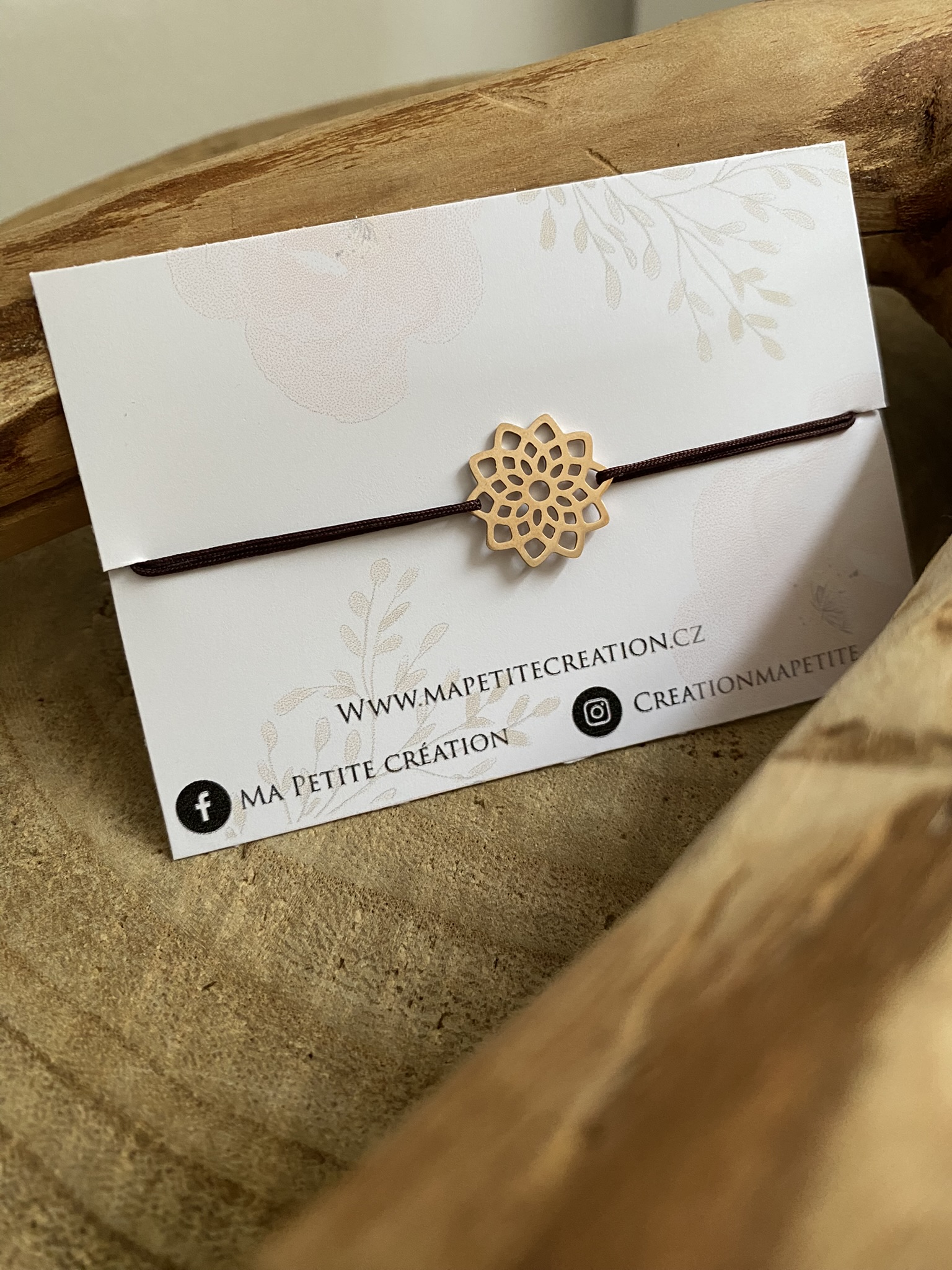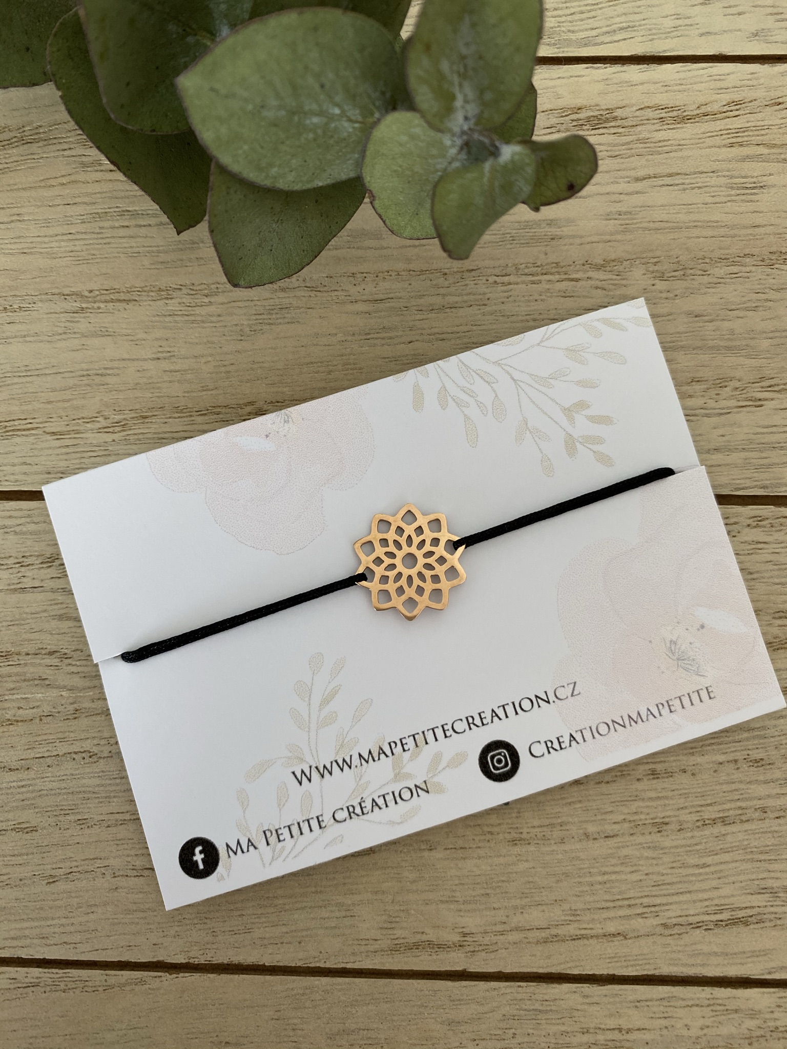 Jemný šňůrkový náramek s mandalou z chirurgické oceli, v něžném růžově zlatém odstínu.