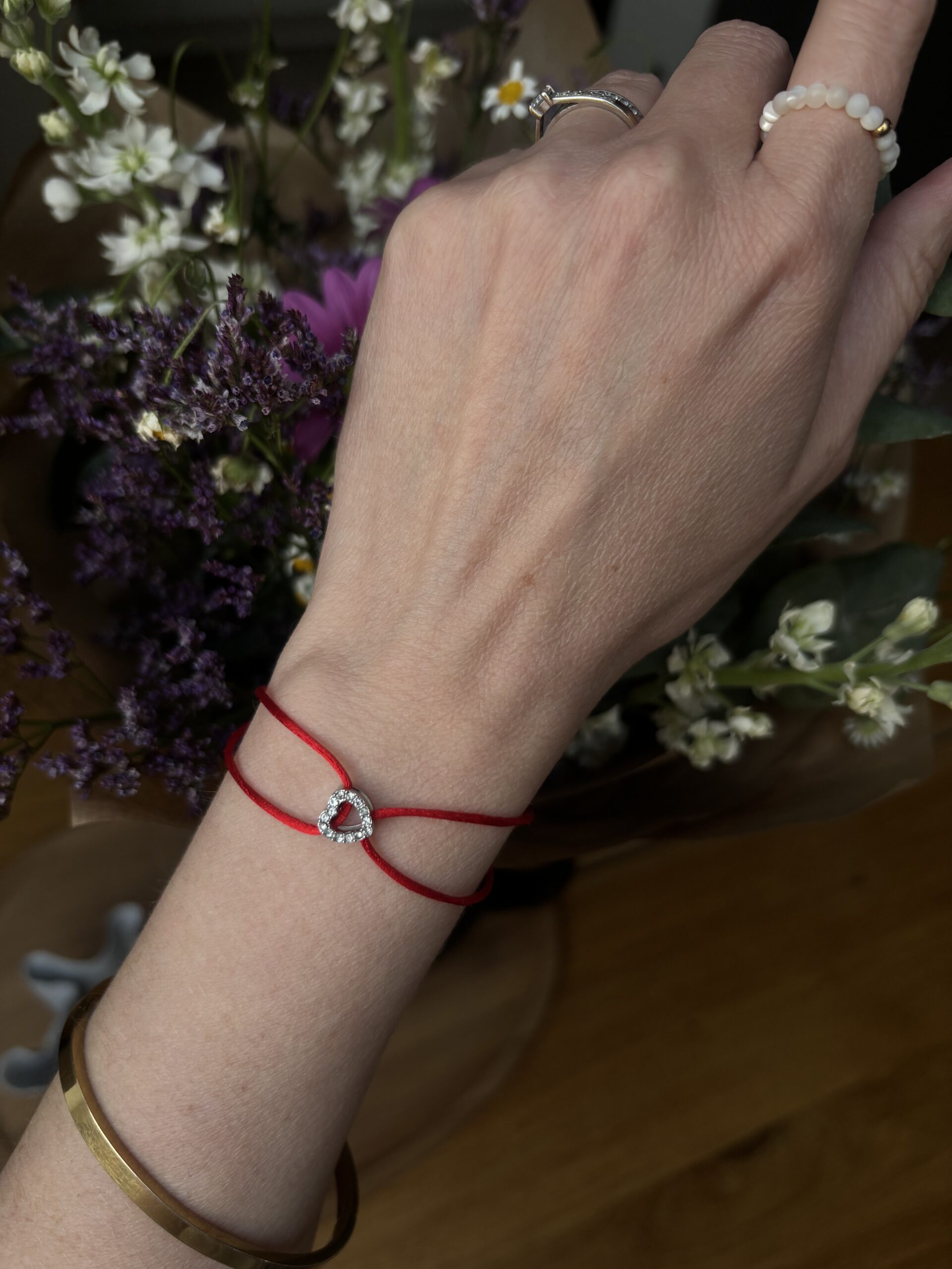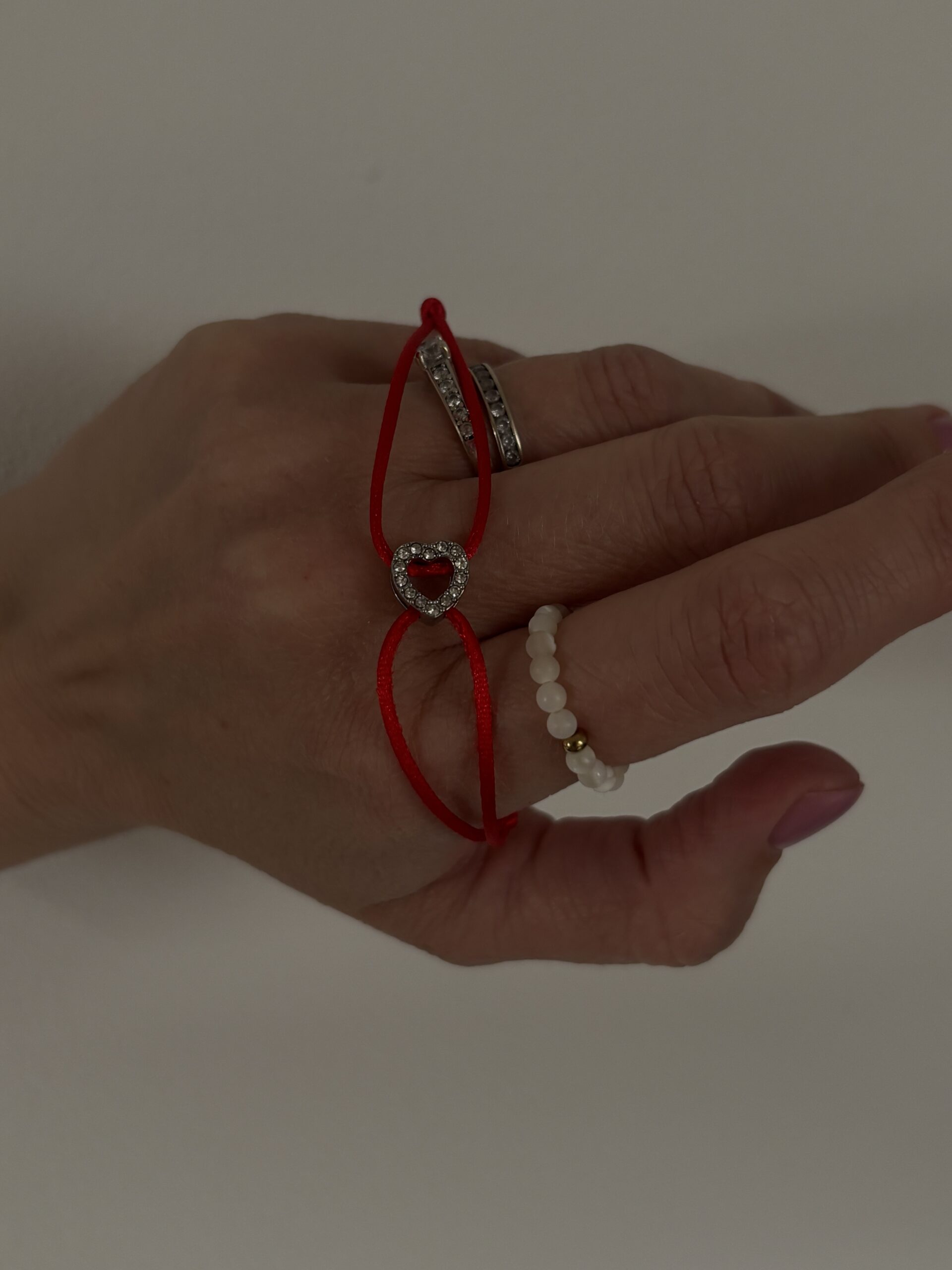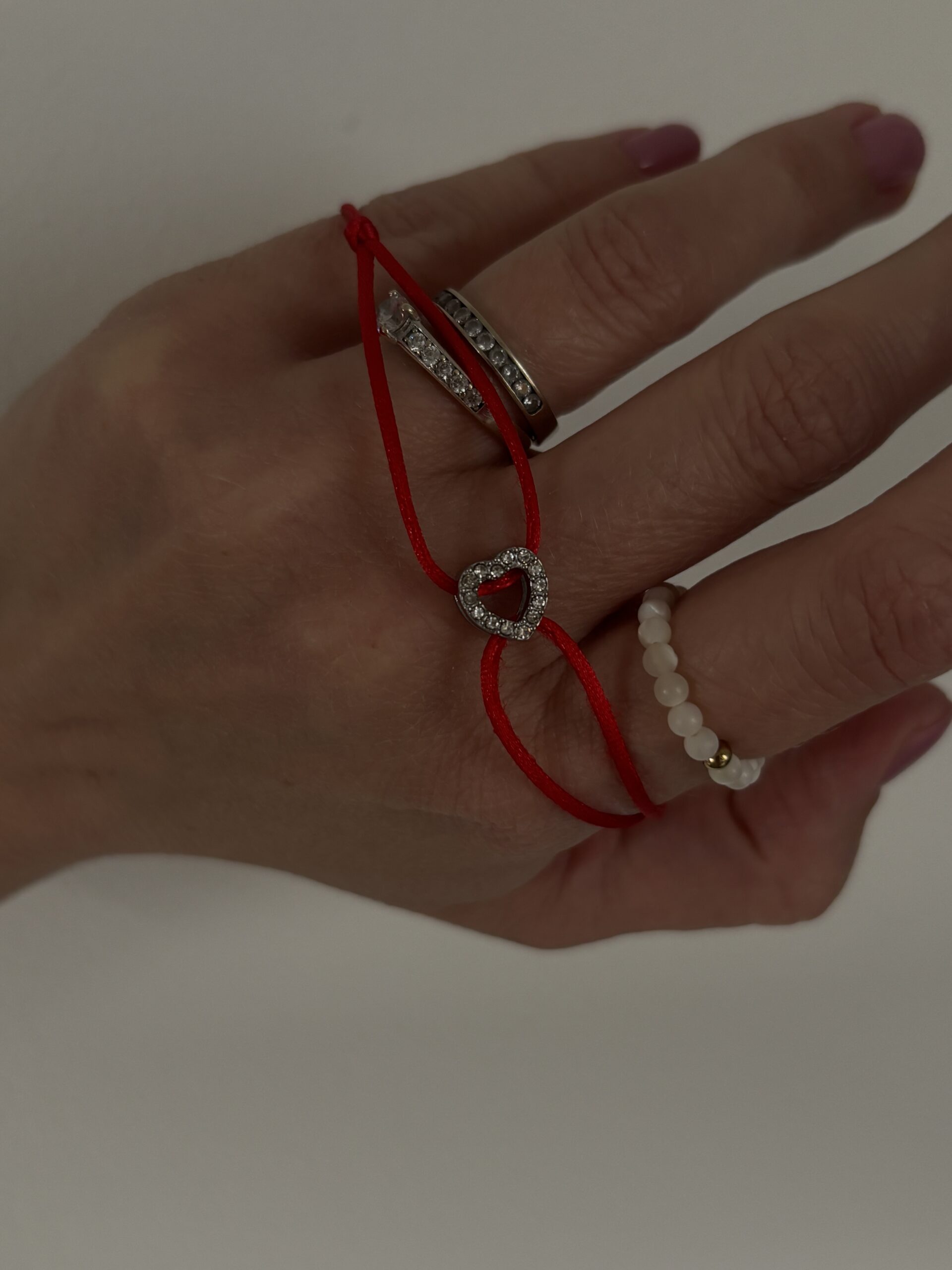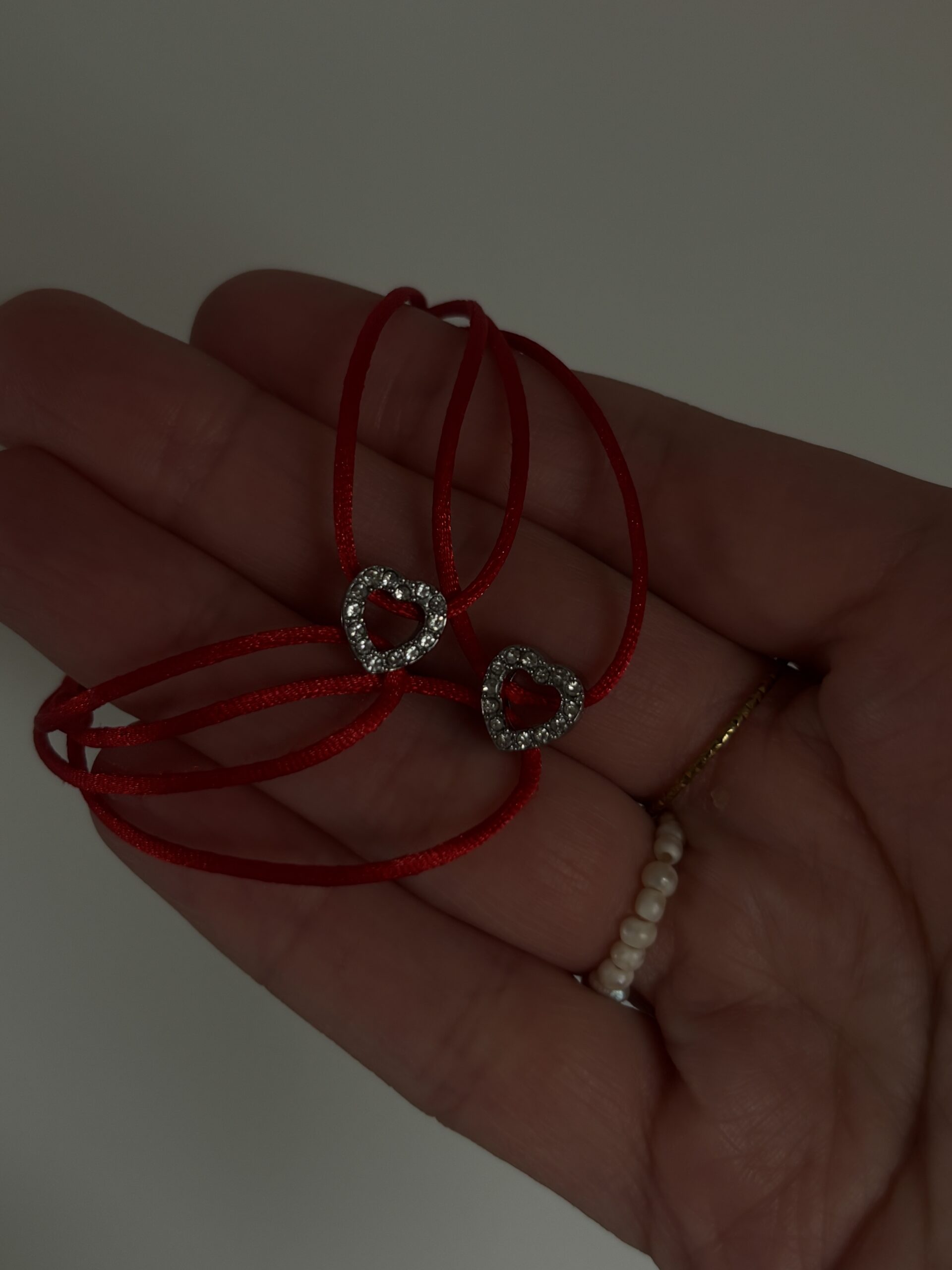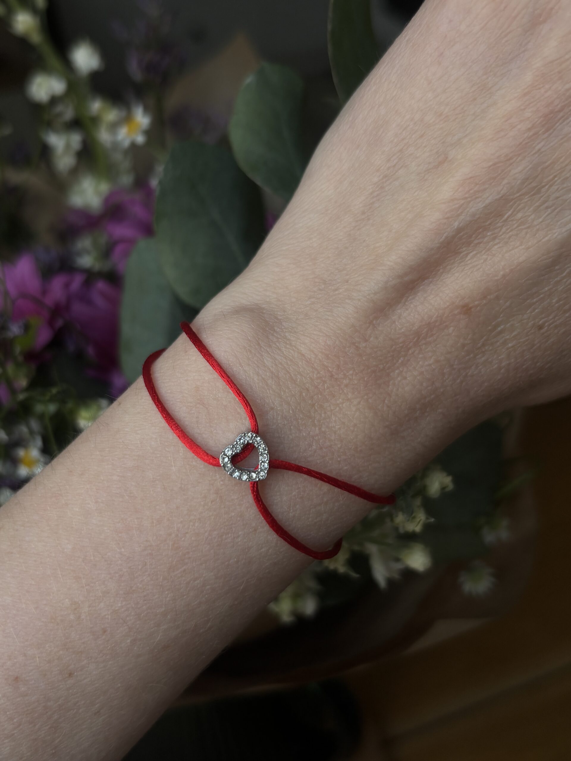Materiál: Srdce z kvalitní chirurgické oceli osázené broušenými kamínky, odolná a jemná saténová šňůrka v sytě červené barvě